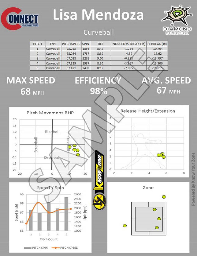 This is a sample of what every pitcher will get for your growth and recruiting journey. Every camper will be emailed their own file with the data collected at camp. You can share it with any college of your choice! You will get information on all pitches collected and a summary to help you understand what you are looking at. This data is priceless!!